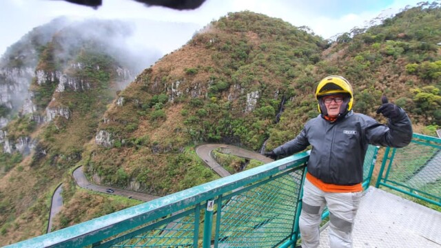 De São Joaquim, saímos com 7 graus. Muita neblina. Chuva fraca. Chegamos ao esperado mirante da Serra do Rio do Rastro. Tudo encoberto. A turma estava ansiosa. Sem perder o ânimo e a empolgação, começamos a descer a serra. O trânsito era intenso. Aquele trecho seria interditado, para reformas, das 08h00 às 18h00. De repente, como um capricho da natureza, tudo se abriu, possibilitando tirarmos várias fotografias e fazermos as filmagens que tanto esperávamos. Depois de algumas horas naquele pedaço de serra, rumamos para Balneário Camboriú para o merecido descanso. Afinal, qual mineiro não gosta de praia?